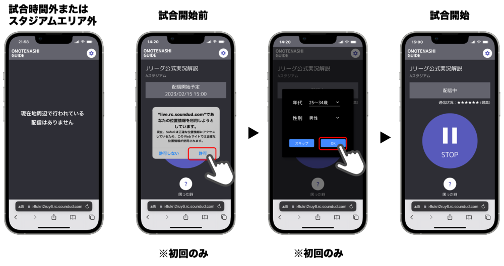 ・Location information authentication is required to start using the service. Please enable or allow location services in your OS or browser app settings in advance.