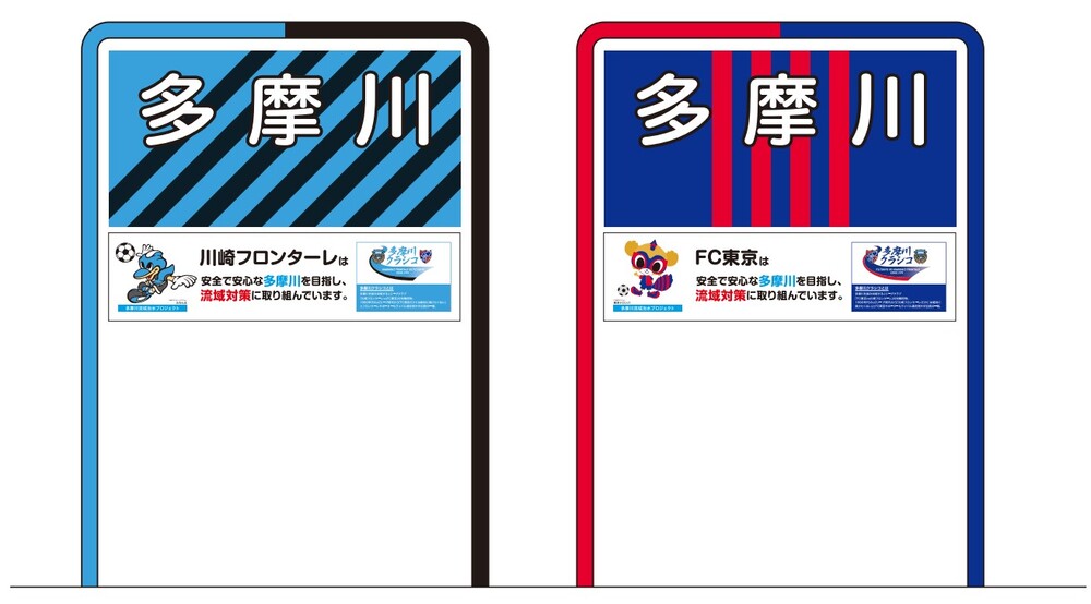 This time, among the Tama River river name signs, the river name sign near Maruko Bridge will be renewed as "Tama River Clasico ver." which is inspired by the colors of both clubs. This will be the first initiative in the country to install river name signs that are inspired by club colors as a professional sports club.