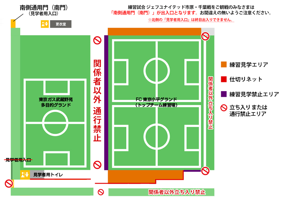・"With the holding of the "Takamado Cup JFA U-18 Soccer Premier League 2023 EAST Sec. 13" match, for those who will be watching the top team's practice match, please note that the south side gate (south gate) will be the entrance and exit. Please be careful not to make a mistake."