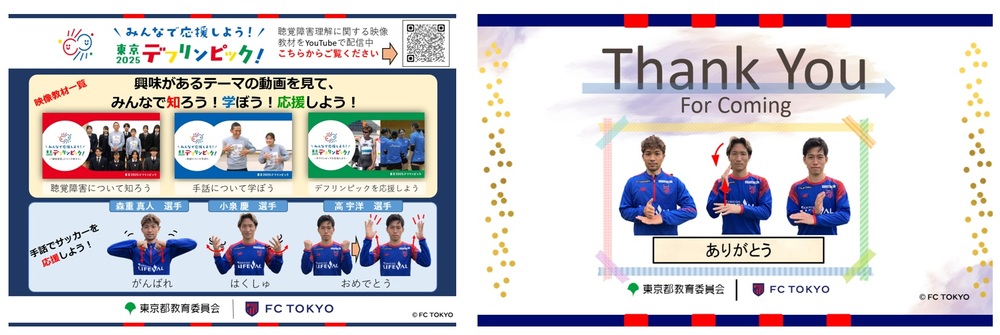 On Dec 8 (Sun) 2024, in the Meiji Yasuda J1 League Sec. 38 vs Cerezo Osaka (14:00 kickoff/Ajinomoto Stadium), we will collaborate with the Tokyo Metropolitan Board of Education to exhibit a booth titled "Let's Try Talking in Sign Language Together" and promote the educational video material regarding understanding hearing disabilities, "Let's Support Together! Tokyo 2025 Deaflympics!".