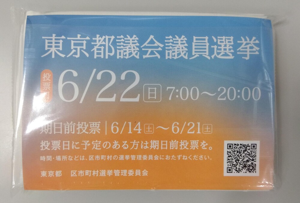 The voting day for the Tokyo Metropolitan Assembly election is Sunday, June 22. Early voting will start from Saturday, June 14. Please check the special website below for more details about the election.