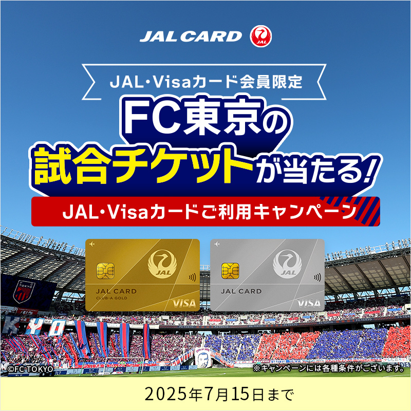 The club's official partner, Japan Airlines Co., Ltd. (hereinafter "JAL"), is currently running the "JAL & Visa Card Usage Campaign" where you can win FC Tokyo match tickets!