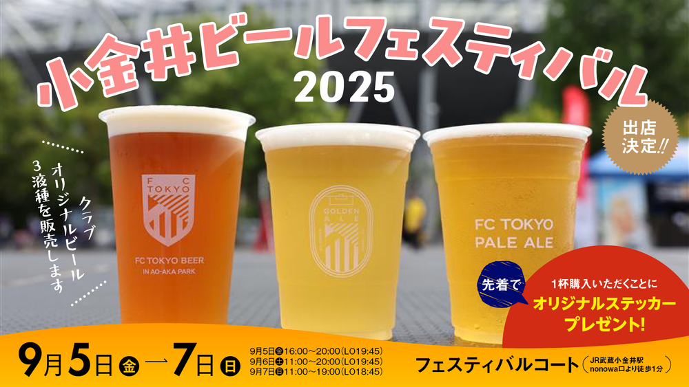 FC Tokyo original craft beer will be sold at the 'Koganei Beer Festival 2025' held on Sep 5 (Fri), 6 (Sat), and 7 (Sun).