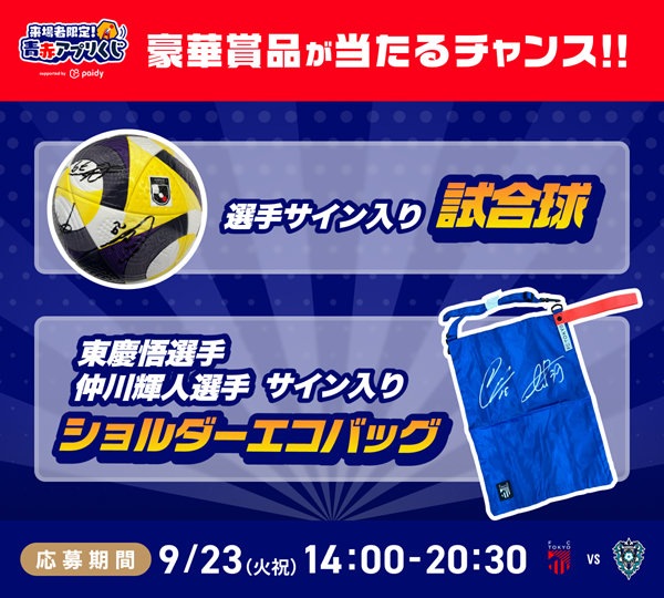 On September 23 (Tue, Holiday), 2025 Meiji Yasuda J1 League Sec. 31 vs Avispa Fukuoka (6:00 p.m. kickoff / Ajinomoto Stadium), we will hold the attendees-only 'Blue-Red App Lottery supported by Paidy' using the FC Tokyo official app.