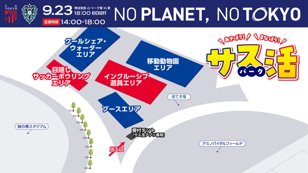 On Tuesday, September 23, 2025 (holiday), during the 2025 Meiji Yasuda J1 League Sec. 31 match vs Avispa Fukuoka (6:00 p.m. kickoff / Ajinomoto Stadium), we will hold the "KURASHINO SASUKATSU presents Let's Play! Let's Learn! SASUKATSU Park" event.
