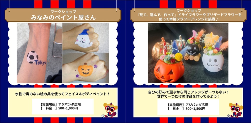 We will offer various handmade workshops featuring cute Halloween-themed items and body painting to make Halloween more enjoyable.
