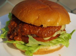 Cheeseburger...650 yen 100% beef, juicy homemade hamburger with homemade sauce. |