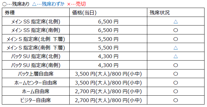 ※Back SB reserved seats and Home SG reserved seats are only available for annual ticket sales. Pre-sale tickets and same-day tickets will not be sold.