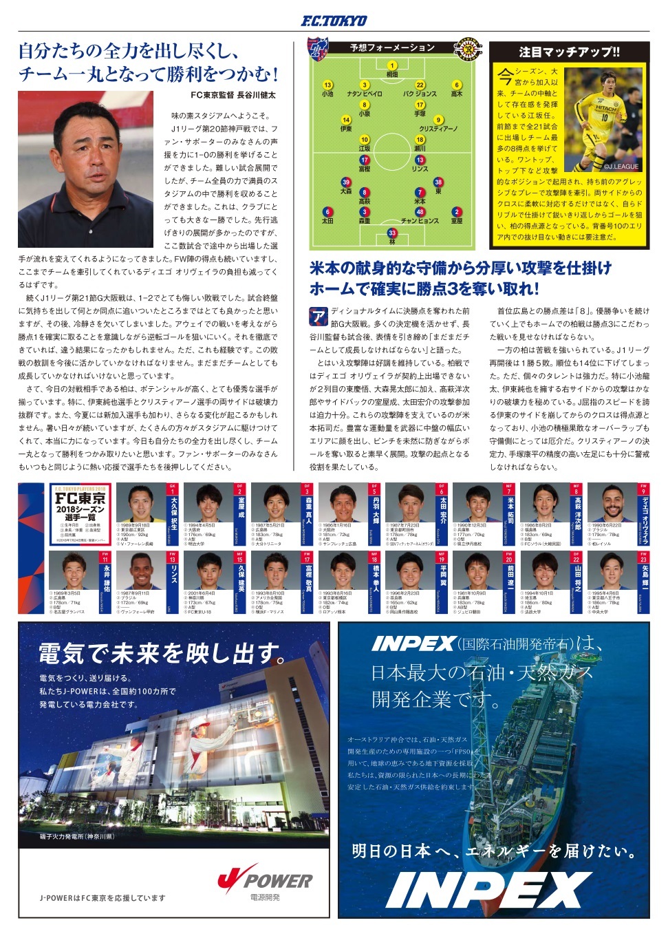 Regarding the official match day program for the Meiji Yasuda J1 League Sec. 22 vs Kashiwa Reysol (kickoff at 19:00/Ajinomoto Stadium) on 8/15 (Wed) 2018, we would like to provide the following information.