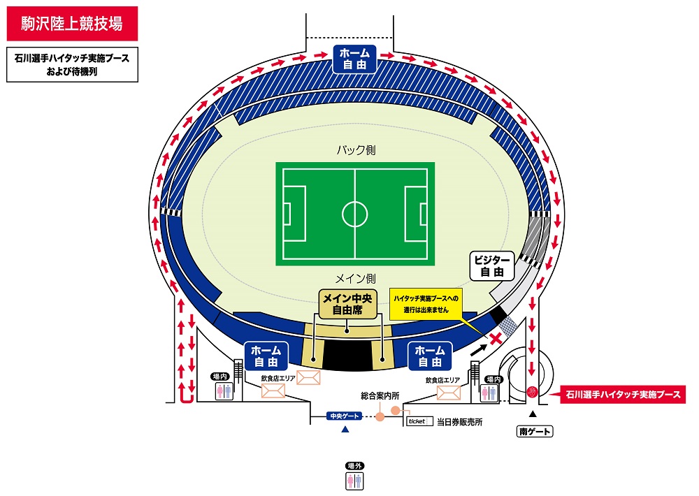 ※You cannot move from the main stand side to the visitor side. (It is one-way)