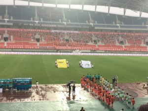 The kickoff took place in the harsh heat with a temperature of 35 degrees and humidity of 80%.