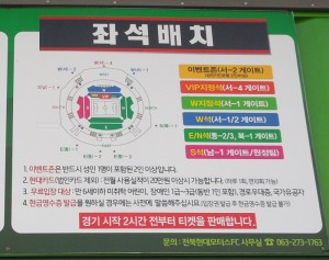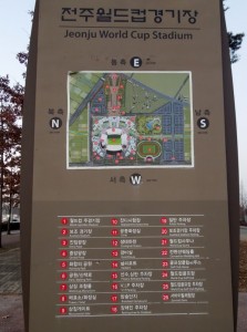 From within the city of Zeonju, you can reach the stadium by taxi or bus (with transfers). However, I have heard that it is very difficult to return to the city using public transportation after the game, as taxis may not be available and it may be impossible to board a bus.