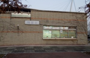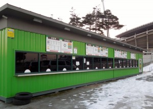 (Photo on the left) Back side ticket booth (E) / (Photo on the right) Goal side ticket booth (S)