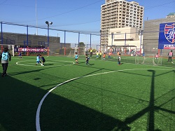 The facility is located on the rooftop of a building. The ball cannot be used outside of the pitch.