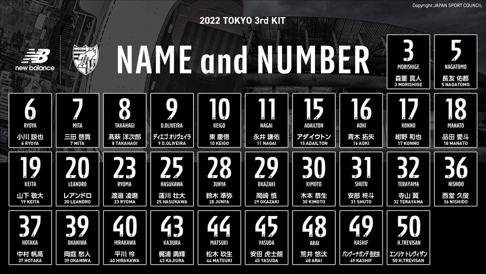 We are pleased to announce that FC Tokyo will also wear the 3rd uniform in official matches during the 2022 season. The 3rd uniform will be worn in the 2022 Meiji Yasuda Life Insurance Company J1 League Sec. 30 match against Kyoto Sanga F.C., held at Japan National Stadium in September.