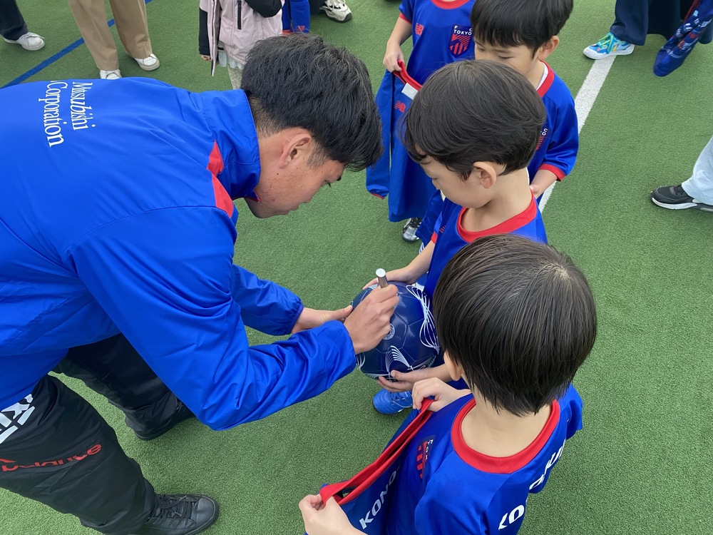 When talking about the number of times they juggled during elementary school and the practices they should do now, the children were able to feel a bit closer to professional players and were listening intently to Kimoto's story!