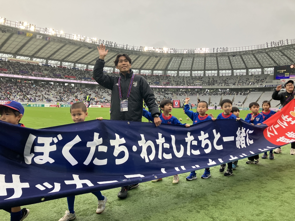 At halftime, first and sixth graders attending the school carried the FC Tokyo Soccer and Futsal School banner as they circled the pitch!