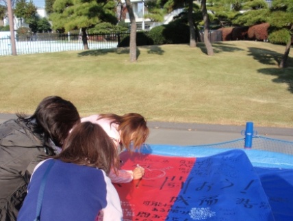 この日は、①11月30日(日)新潟戦の告知、②FC東京グッズ販売、に全精力を投入いたしました。国立旭通り商店会様のご協力もいただき、告知チラシも多数配布でき、またグッズ販売も通常のイベント時の倍以上の売上げがありました。