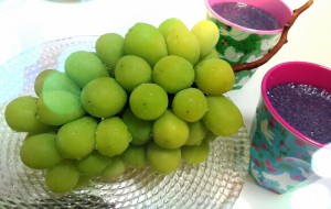 食欲がある時は、シリアルを少しふりかけて食べるスムージー風にしています。今話題のミキサーを購入したのですが、快適にたっぷりの酵素が摂れるようになりました。少し前までは、キュウイ・マスカット・すだち・しそ・パクチーなどの爽やかな食材を。最近はバナナ・柿・ブルーベリー・りんご・白菜・小松菜など冬バージョンに食材を変えつつあります。小松菜はビタミンA、鉄分などを豊富に含み、野菜の中ではカルシウムの含有量が高いことで知られています。また、灰汁が少なく色の割にはフルーツの風味を損なわないので、スムージーには最適と思われる野菜です。少しでも老化を遅らせようと、日々努力をしております。