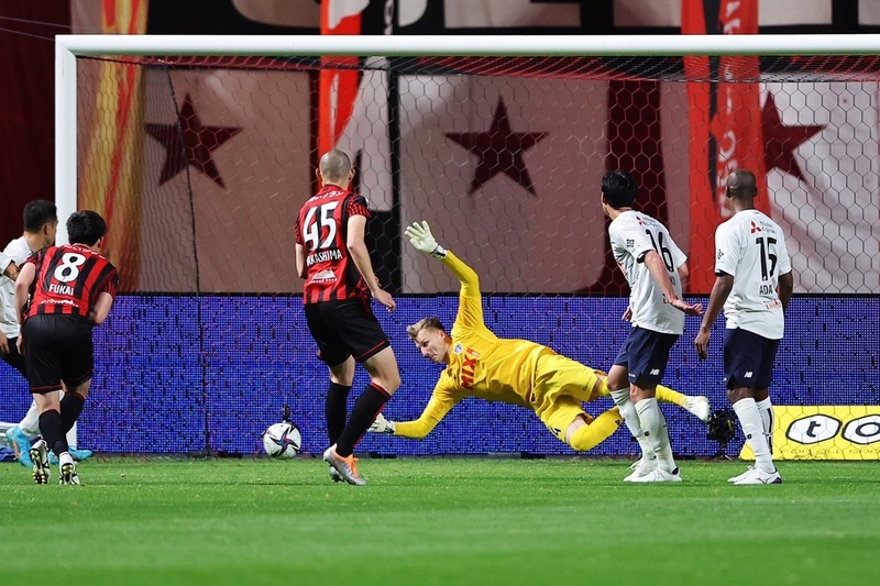 後半34分にはセットプレーでピンチが訪れる。左からのコーナーキックを頭で合わされるがスウォビィク選手がセービングし、こぼれ球をもう一度プッシュされるが、これもスウォビィク選手が体勢を立て直して反応し、ゴールラインギリギリのところで止めるビッグセーブを見せた。後半40分には紺野選手が起点になって安部柊斗選手が右サイドを抜け出すと、ゴール前に速いクロスボールを入れるがゴール前でわずかに合わない。後半42分には左サイドのアダイウトン選手がゴール前に入ってきたディエゴ オリヴェイラ選手にクロスボールを合わせるが、ディエゴ選手のヘディングシュートはわずかにゴールの右へと逸れた。後半44分にはアダイウトン選手がドリブルでペナルティエリアの左寄りのスペース深くまで侵入し、ゴールキーパーも引き出してゴール前にラストパスを送り、飛び込んできた松木玖生選手がスライディングで合わせにいったがわずかに届かなかった。