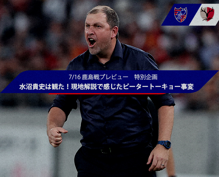 7月1日に行われた柏レイソル戦と7月8日に行われた浦和レッズ戦の解説を務めた水沼貴史氏に、東京の変化について語っていただきました。