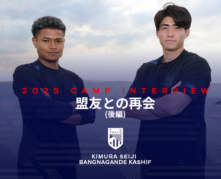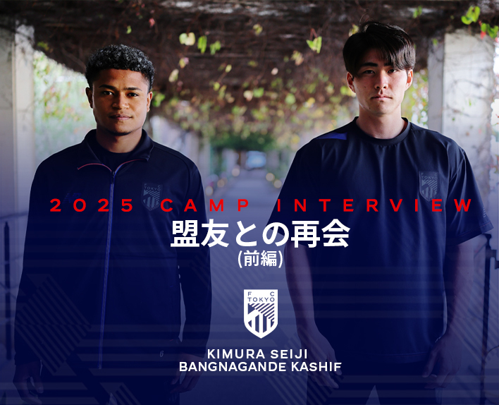 木村誠二とバングーナガンデ佳史扶。U-15深川から長年の“盟友”が今シーズン、再び東京の地で同じユニフォームに袖を通すことになった。トップチーム昇格後、期限付き移籍を重ねて成長してきた木村は、昨シーズン、パリ五輪世代のU-23日本代表で主力となり、世界を経験して青赤に戻ってきた。一方の佳史扶は東京で研鑽を積み、2023年3月にA代表デビュー。パリ五輪は負傷の影響で本大会出場はならなかったが、ピッチで異彩を放つ存在へと進化を遂げた。異なる道を歩んできた二人が、それぞれ進化を遂げて再び邂逅する2025シーズン。果たして両選手はあらためて何を思うのか。後編では新シーズンのサッカーとお互いのプレー、背番号について語り合った。