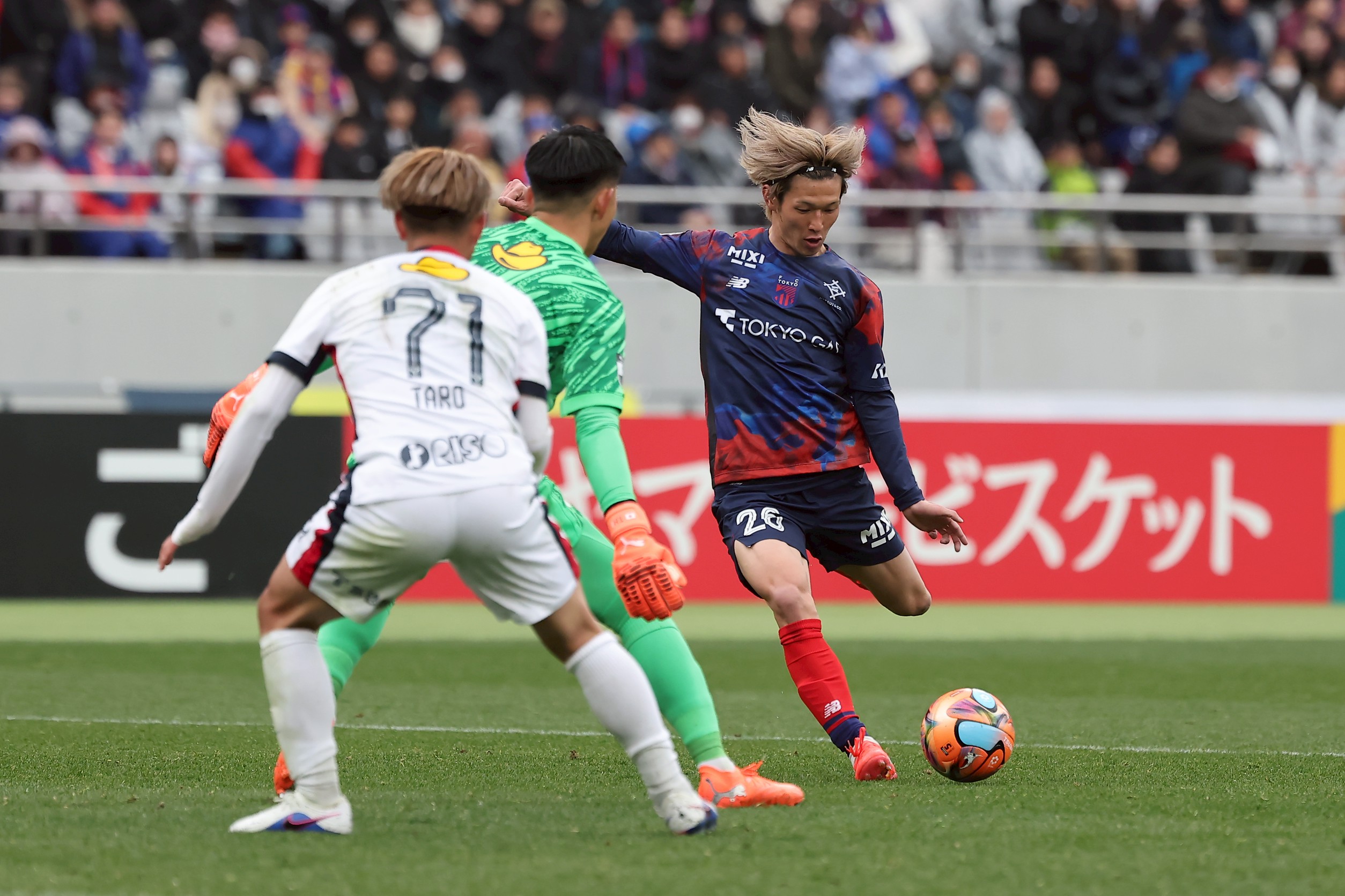 立ち上がりから積極的な姿勢を見せていく東京。前半2分にマルセロ ヒアン選手が果敢なプレスで相手の自由を奪うと、同10分には佐藤恵允選手が素早く寄せてボールをカットし、右サイドを突破してチャンスを作った。