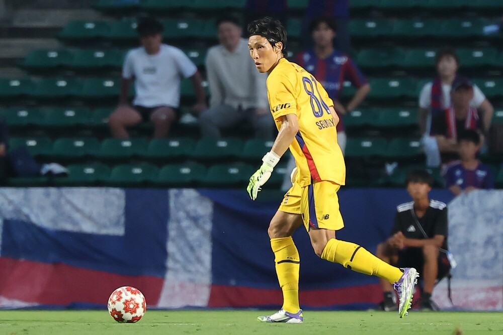 またしてもピンチの後にチャンスあり。守護神のファインセーブでピンチを防いだ直後の同35分、自陣で素早く囲い込んで長倉選手がボールを奪取すると、俵積田選手が左から右へピッチを横断するようなドリブルを披露。ここからのパスを受けた佐藤選手が相手守備陣の頭を越える浮き球パスでファーサイドへ展開すると、そこに再び長倉選手が顔を出し、ワントラップからゴールへ流し込んで東京が勝ち越しに成功。攻守に獅子奮迅の活躍を見せていた背番号26が大きな仕事をやってのけた。