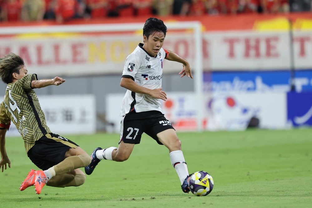 ホームで行われた2025明治安田J1リーグ第27節の京都サンガF.C.戦、天皇杯準々決勝の浦和レッズと中2日、中3日という過密日程を臨んだ前節の名古屋グランパス戦。多数の負傷者に加えて、長友佑都、橋本拳人、小泉慶という経験豊富な3選手が出場停止という苦しい台所事情で迎えたゲームだったが、試合は東京がボールを保持する展開で進んでいく。