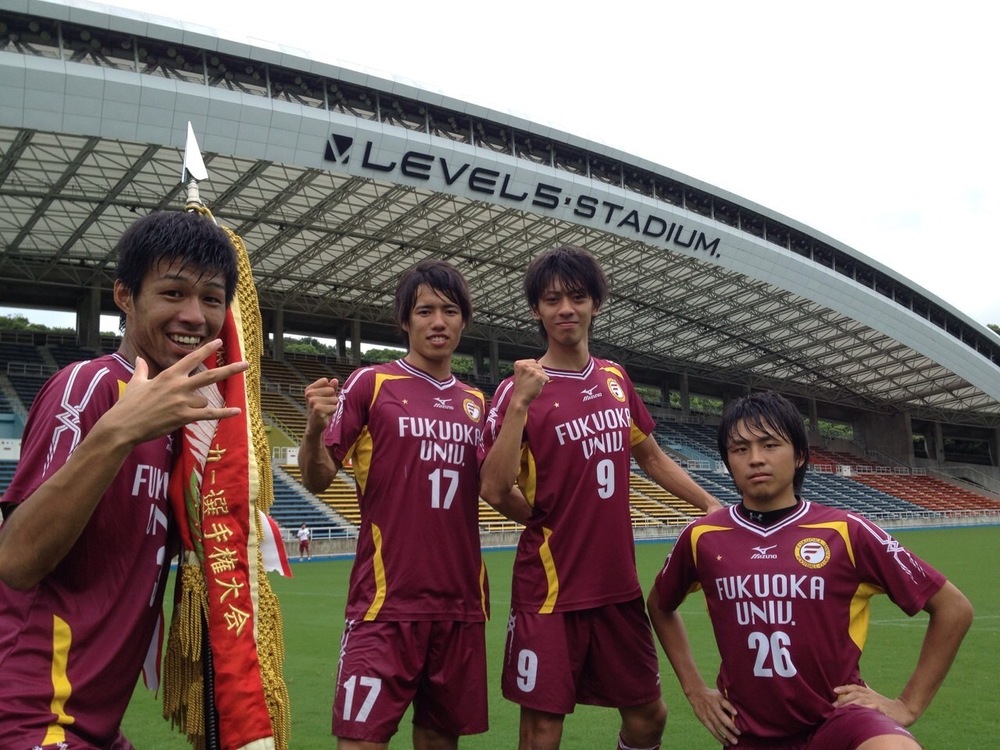 그런 전통 있는 학교의 분위기와도 잘 맞았다. 자유롭게 기술을 키워 나가며 고등학교 3학년 때 센터백의 주전 자리를 잡았다. 여름에 열린 전국 고교 종합 체육대회에서는 준우승에도 기여했고, 다음 해에는 축구 추천으로 대학에 진학했다. 그 진학지는 규슈의 강호인 후쿠오카 대학을 선택했다. 계기는 이나이 마사히로 감독의 권유 문구였다. 농담 섞어 “솔직히 속은 기분이 들었어요”라며 쓴웃음을 지으며 이렇게 덧붙였다.