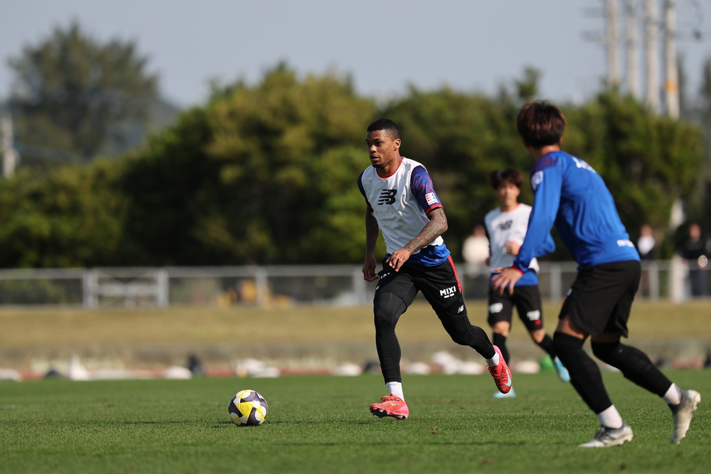 오키나와·구니가미 캠프 10일차에는 피지컬 요소도 더해진 트레이닝을 실시했다. 이번 캠프 첫 휴식을 앞두고 오전에는 고강도 대인 훈련으로 땀을 흘렸다. 더불어 오후에는 빌드업과 게임 형식의 트레이닝 등으로 힘든 하루를 마무리했다.