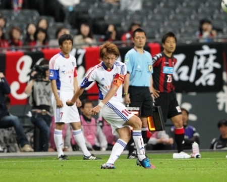 시작 1분 만에 빅 찬스가 찾아온다. 왼쪽 코너킥에서 이시카와의 킥에 맞춰 니어 포스트에 하세가와가 뛰어든다. 이 슛은 마무리하지 못했지만, 흘러나온 볼을 이어 받아 다시 왼쪽 사이드의 이시카와가 하세가와와 원투 패스를 주고받으며 페널티 에어리어 안으로 진입한다. 안쪽으로 보낸 마지막 패스를 니어 포스트의 카지야마가 어려운 자세임에도 오른발 아웃으로 맞추었다. 볼은 파 포스트 네트에 빨려 들어가 원하는 선제골을 성공적으로 뽑아냈다.