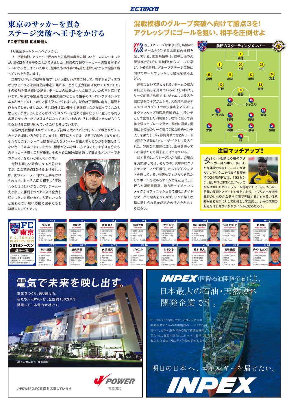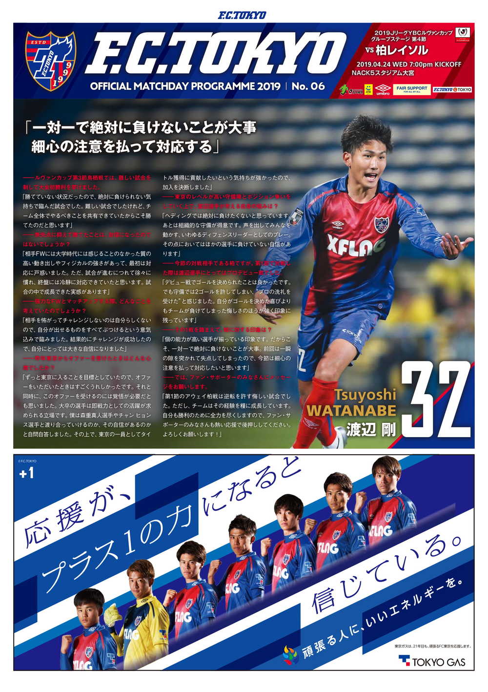 □오피셜 매치데이 프로그램 2019 No.6(표지: 와타나베 츠요시 선수)