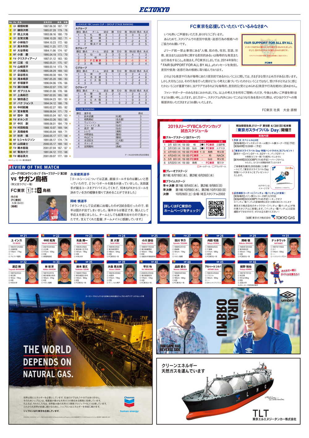 4/24(수) 2019 J리그 YBC르방컵 그룹 스테이지 제4절 vs 가시와 레이솔(19:00 킥오프/NACK5 스타디움 오미야) 공식 매치데이 프로그램에 대해 아래와 같이 안내드립니다.