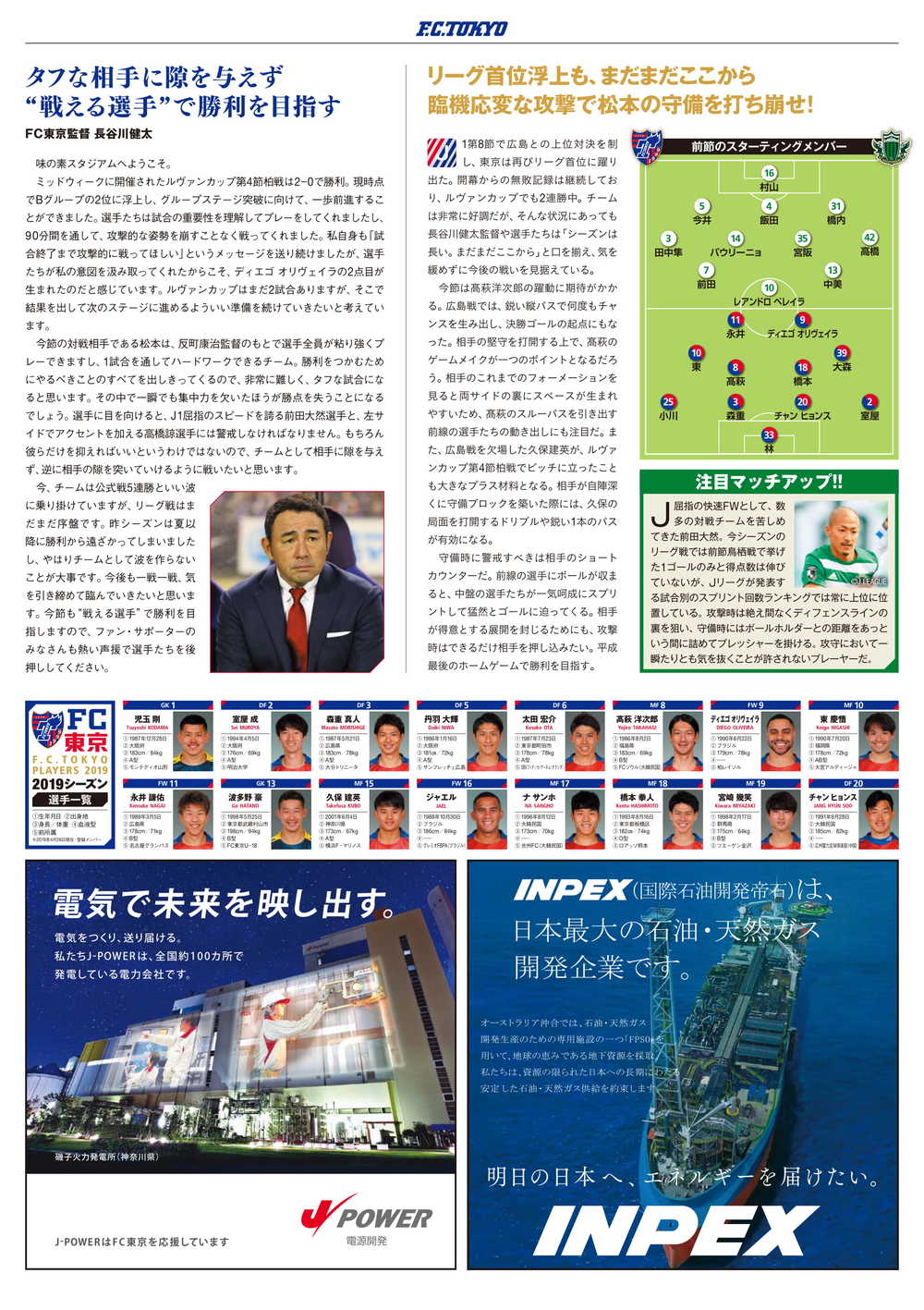 4/28(일) 2019 메이지 야스다 생명 J1 리그 제9절 vs 마츠모토 산가 FC(14:00 킥오프/아지노모토 스타디움) 공식 매치데이 프로그램에 대해 아래와 같이 안내드립니다.