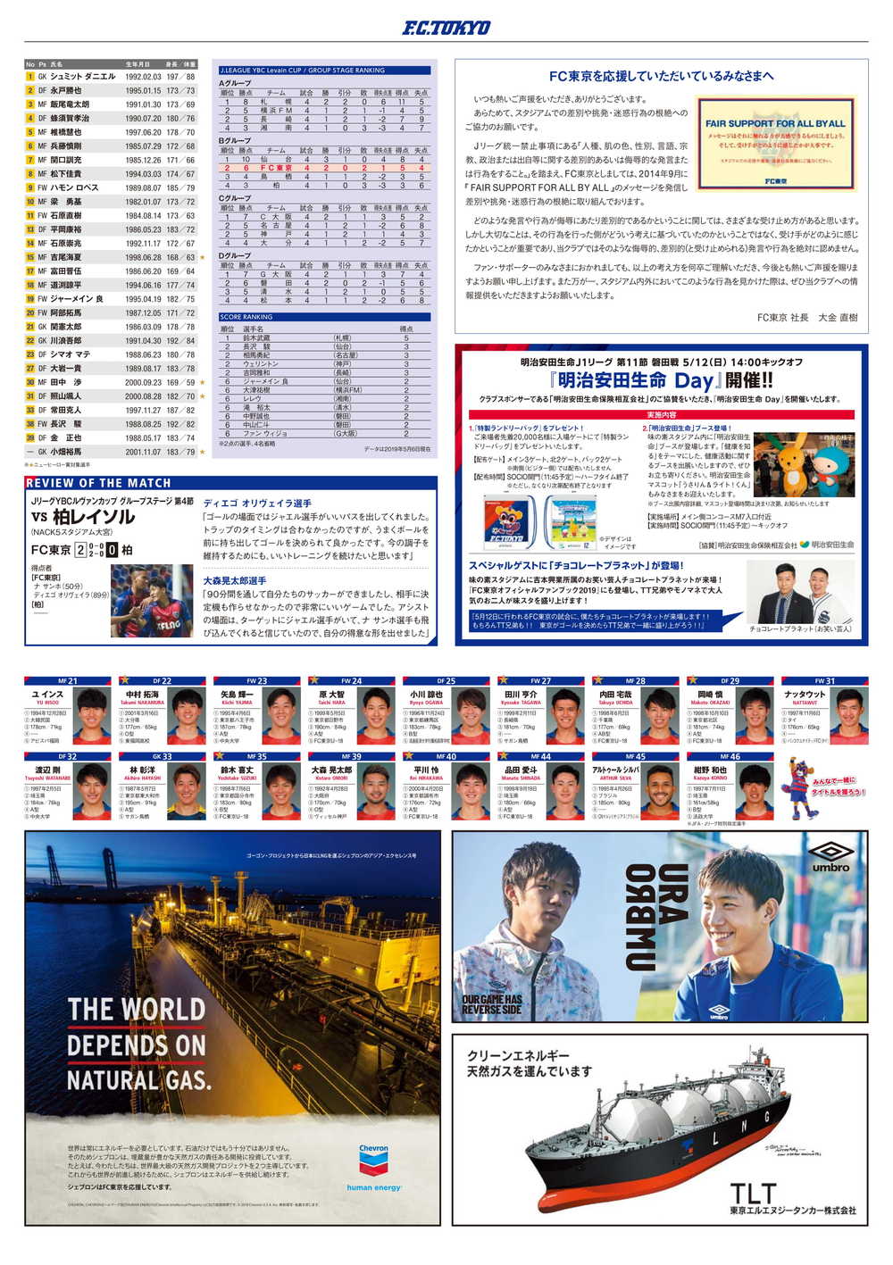□오피셜 매치데이 프로그램 2019 No.8(표지: 오카자키 마코토 선수)