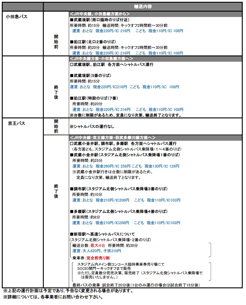 5/12(일) 2019 메이지 야스다 생명 J1리그 제11절 vs 주빌로 이와타(14:00 킥오프/아지노모토 스타디움)에서 운행되는 셔틀버스·노선버스에 대해 안내드립니다.