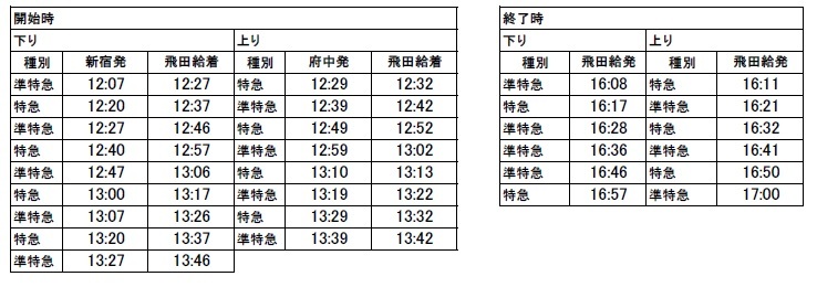 상행…후추 출발 12:29~13:39 특급·준특급/총 8편