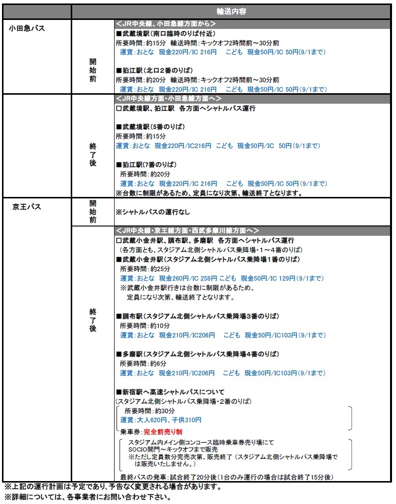 8/3(토) 2019 메이지 야스다 생명 J1리그 제21절 vs 세레소 오사카(19:00 킥오프/아지노모토 스타디움)에서 운행되는 셔틀버스·노선버스에 대해 안내해 드립니다.
