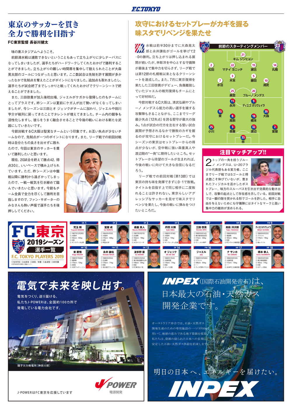 8/3(토) 2019 메이지 야스다 생명 J1리그 제21절 vs 세레소 오사카(19:00 킥오프/아지노모토 스타디움) 공식 매치데이 프로그램에 대하여 아래와 같이 안내드립니다.