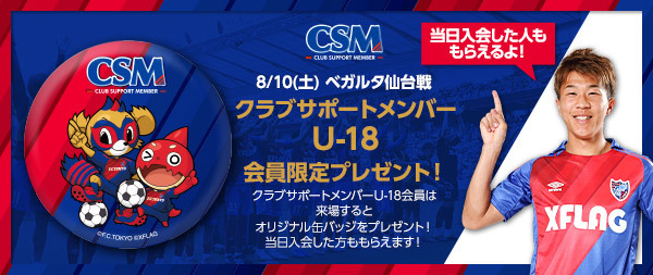 또한, 당일 경기장에 오신 클럽 서포트 멤버 U-18 회원 선착순 1,500분께 센다이전 한정 오리지널 캔 배지를 선물로 드립니다. 당일 가입하신 분도 대상이 되오니, 꼭 이 기회에 가입해 주세요!