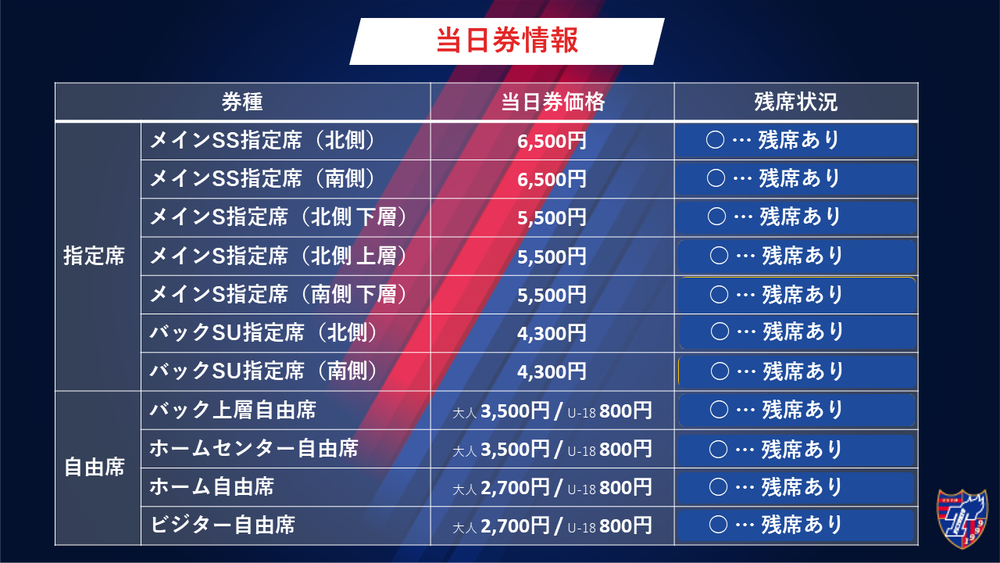 ※FC 도쿄 응원 구역(각 지정석 홈 쪽, 백 상층 자유석 홈 쪽, 홈 센터 자유석, 홈 자유석) 내에서는 비지터 팀 응원이 일절 불가능합니다.