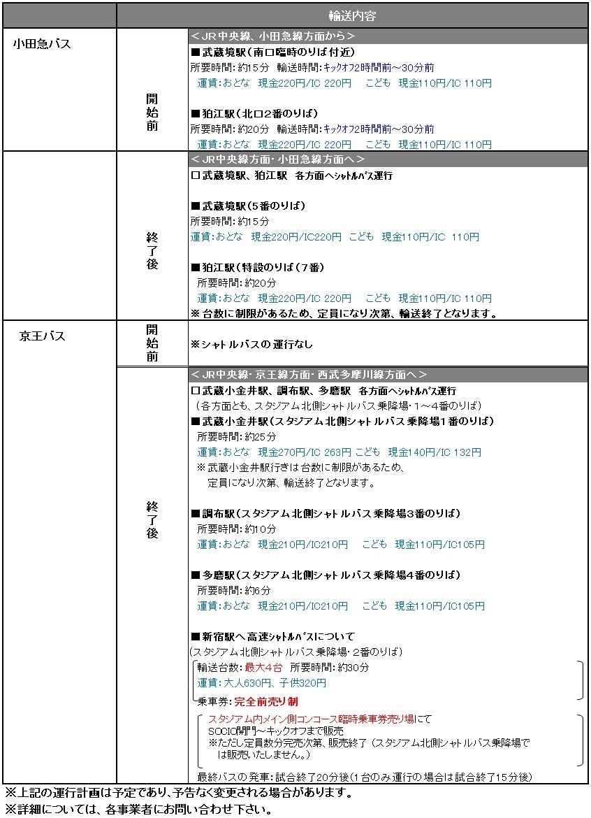 11/23(토, 공휴일) 2019 메이지 야스다 생명 J1리그 제32라운드 vs 쇼난 벨마레(14:00 킥오프/아지노모토 스타디움)에서 운행되는 셔틀버스·노선버스에 대해 안내드립니다.