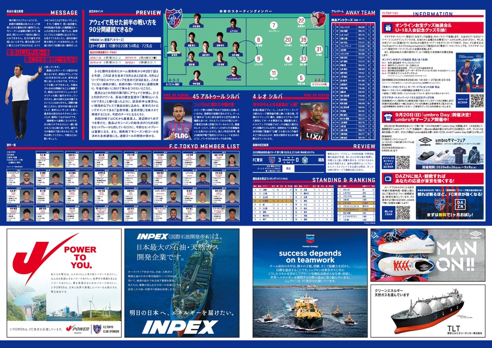 8/26(수) 2020 메이지 야스다 생명 J1 리그 제26절 vs 가시마 앤틀러스(19:00 킥오프/아지노모토 스타디움) 공식 매치데이 프로그램에 대하여, 아래와 같이 안내드립니다.