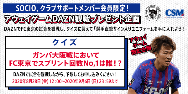 SOCIO, 클럽 서포트 멤버 여러분께서 FC 도쿄의 원정 경기를 즐겁게 시청하실 수 있도록, 원정 경기 특별 기획으로 「선수 직필 사인 유니폼을 손에 넣자!」기획 제2탄을 실시합니다.