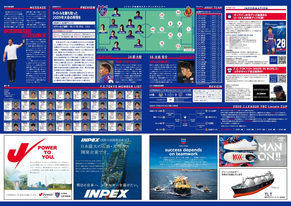 9/2(수) 2020J리그 YBC 르방컵 프라임 스테이지 8강 vs 나고야 그램퍼스(19:00 킥오프/아지노모토 스타디움)의 공식 매치데이 프로그램에 대해 아래와 같이 안내드립니다.