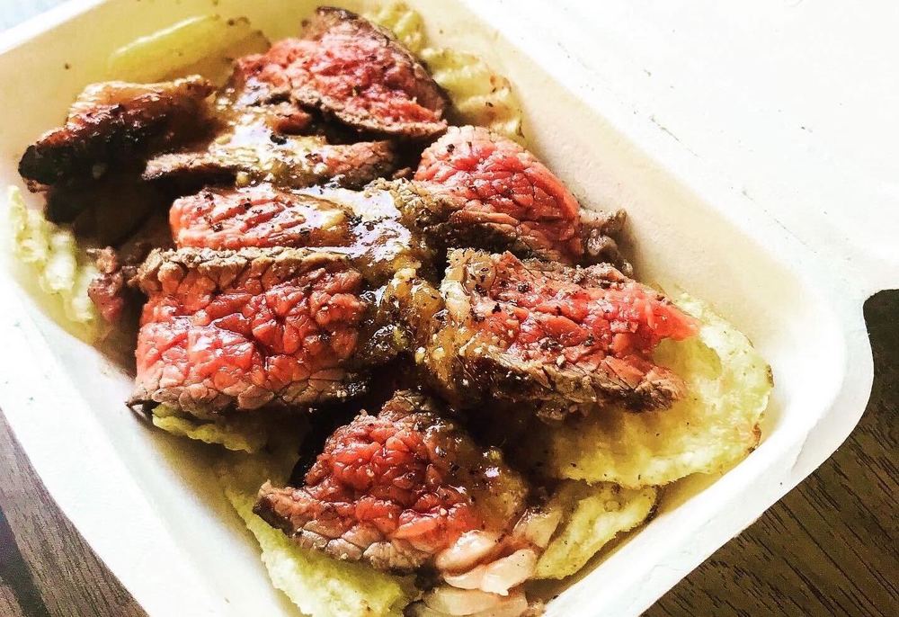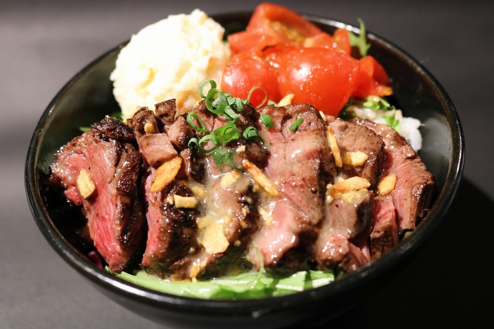・살치살 스테이크 덮밥(마늘 버터 간장) 1,000엔