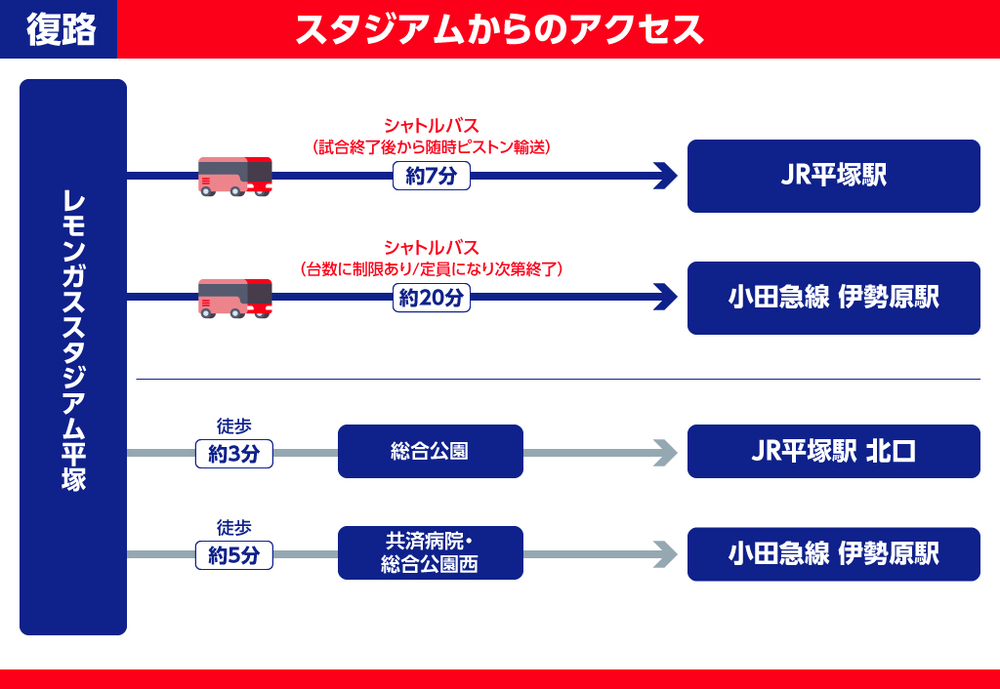 ※히라츠카역행 셔틀버스는 경기 종료 후부터 수시로 왕복 운행합니다.