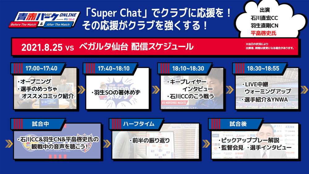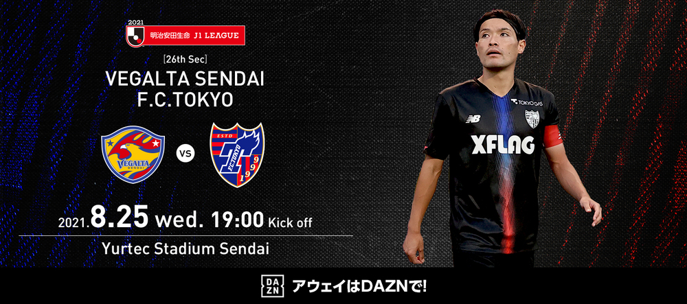 2021.8.24[경기 정보] 【AWAY GAME 정보】8/25(수) 센다이전 1. 대상 경기2021 메이지 야스다 생명 J1리그 제26절베갈타 센다이 vs FC 도쿄8월 25일(수) 19:00 킥오프2.경기장소유아텍 스타디움 센다이3.중계 정보【J리그 공식 방송 파트너】DAZN4.이벤트 정보・아오아카 파크 온라인 Before/After The Match supported by 메차코믹◇자세한 내용은 여기기타 경기 정보는 여기