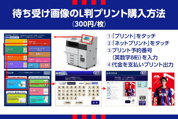 티켓 취득부터 경기까지의 기간 동안에도 이미지를 대기 화면으로 설정하여 즐기시고, 국립경기장 개보수 후 단독 팀의 홈 경기로서는 처음인 뜻깊은 이번 경기의 기념 이미지를 프린트(유료·300엔/장)하여 소장해 주세요!